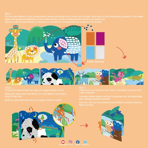 Basta descolar as peças e fazê-las corresponder à forma e cor do desenho, para fazer um livro original e colorido!