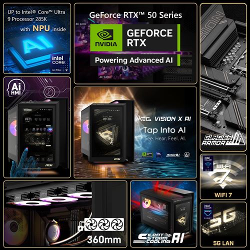 Desktop Gaming MSI MEG Vision X AI 2NVZ9 | Intel® Core™ Ultra 9 285K | NVIDIA® GeForce RTX™ 5090 | 64GB | 2TB SSD