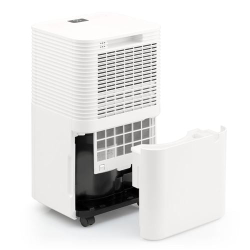 O desumidificador 1317FL tem uma capacidade de extração de 10L/dia, depósito extraível de 2L, função de drenagem contínua e temporizador até 24 horas.