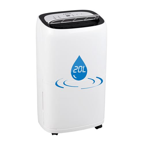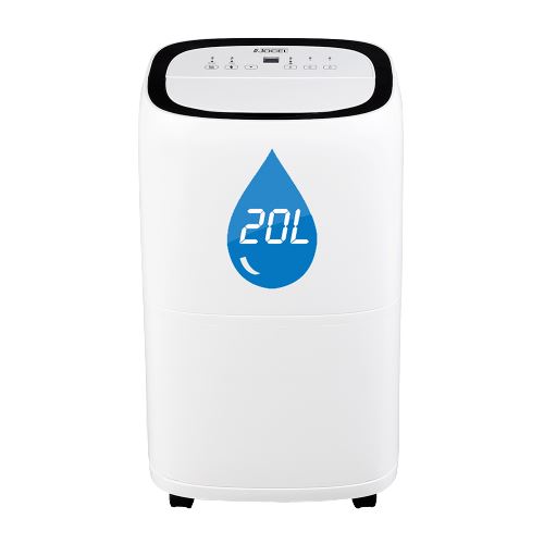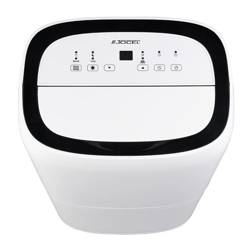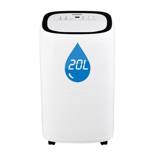 Desumidificador Jocel JDE002136. Extrai até 20 litros de água por dia, reservatório com indicação luminosa do nível de água cheio e capacidade até 5,5 litros.
