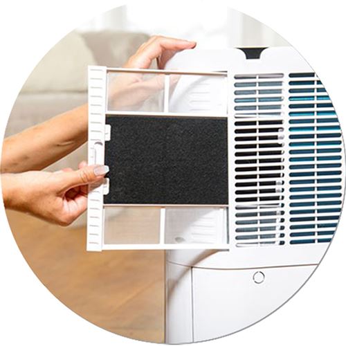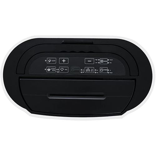 Luz colorida com indicador de percentagem humidade | Humidóstato regulável entre 35 e 80% | Função purificador de ar: inclui UV Light | Filtro de carvão ativado + filtro anti-bactérias | Smart Mode: regulação automática do nível de conforto de humidade a 55% | Função Secagem de Roupa | “Inteligent Defrost” - protege os elementos internos de temperaturas muito baixas | Função Auto-Swing e Auto-Stop | Filtro HEPA H13 opcional (não incluído) | Temporizador 1-24h | Indicado para uma área de 24 a 30