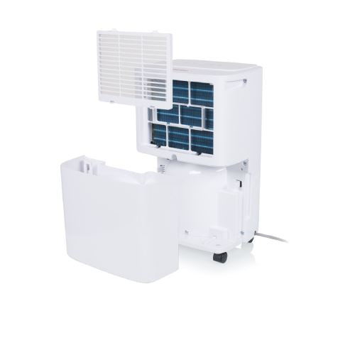 Desumidificador compacto e elegante com capacidade de 10L por dia. Fácil de operar graças ao seu humidistat, indicador de depósito de água cheio, desligar automático, temporizador 24h e depósito de água de 2L removível.