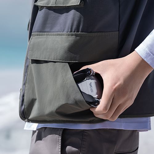 Lente: Campo de visão: 82.1º | Abertura: f/1.7 | Formato equivalente a 35 mm: 24 mm | Alcance de foco: 1 m a 8 | Vídeo: 100 - 6400 (automático); 100 - 6400 (manual) | Foto: 100 - 6400 (automático); 100 - 6400 (manual) | Obturador eletrônico: 2-1/8.000 s | Resoluções de vídeo: 4K: 3840×2160 a 24/25/30/48/50/60 fps | 2.7K: 2720×1530 a 24/25/30/48/50/60 fps | FHD: 1920×1080 a 24/25/30/48/50/60 fps | Câmara lenta: 1920×1080 a 120 fps | Formato de foto: JPEG/DNG (RAW)