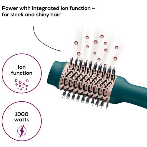 Para um volume extragrande: utilize a escova para modelar e secar o cabelo ao mesmo tempo. O revestimento de cerâmica e queratina de alta qualidade proporciona uma ampla proteção durante a criação do penteado.