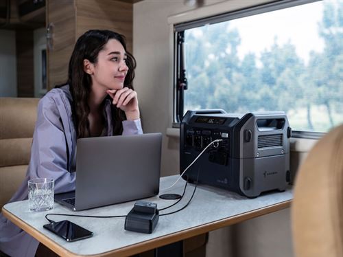 Esta estação de energia é útil quando está em viagem: pode carregar o seu telemóvel, computador, tablet ou câmara, mas também utilizar a sua chaleira, secador de cabelo ou outros aparelhos.