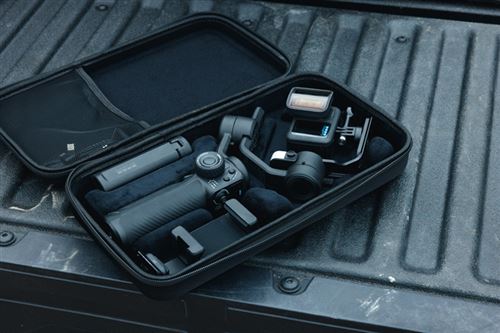 Gimbal | Módulo de rastreamento por AI | Suporte de montagem GoPro | Suporte de montagem para Smartphones | Adaptador para hastes | Parafuso de ajuste manual | Base para tripé | Cabo de carregamento USB-C para o Gimbal | Cabo de carregamento USB-C para a câmara | Estojo com fecho