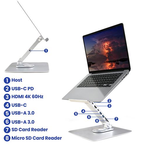 Interfaces HDMI 4K 60Hz | 2x USB-A 3.0 | 1x USB-C 3.0 | PD 100W | SD/TF 3.0