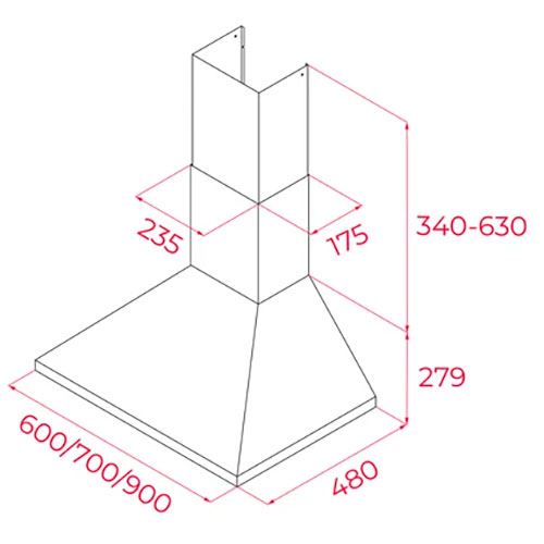 Dimensões (AxLxP) 340-630 x 600 x 480
