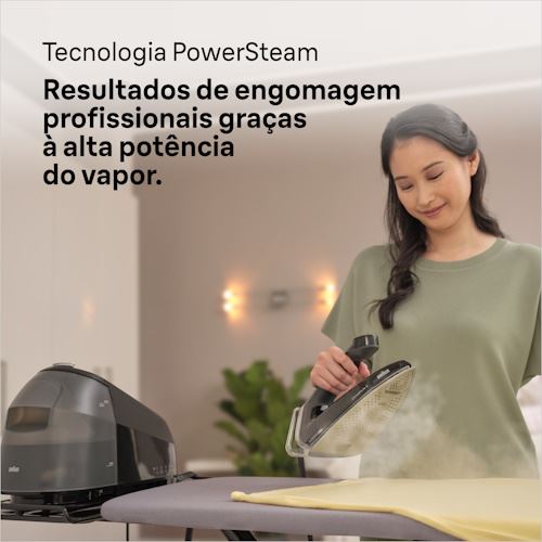 O mais poderoso ferro com caldeira da Braun permite resultados de engomagem profissionais graças ao seu robusto poder de emissão de vapor.