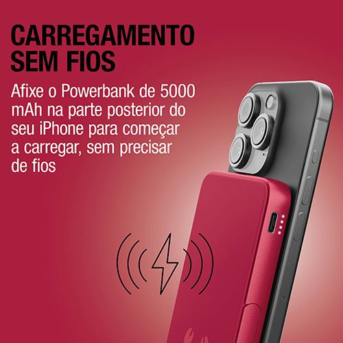 Este powerbank de 5000 mAh permite-te carregar completamente o teu telemóvel quando estás em viagem. Fixa o Powerbank à parte traseira do teu iPhone para o pôr a carregar, sem ajuda de qualquer fio.