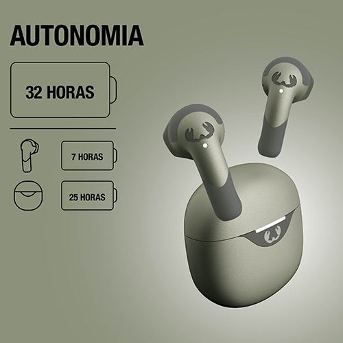 Autonomia dos auriculares + caixa de carregamento: 32 horas