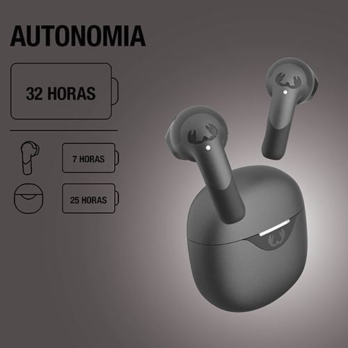 Autonomia dos auriculares + caixa de carregamento: 32 horas