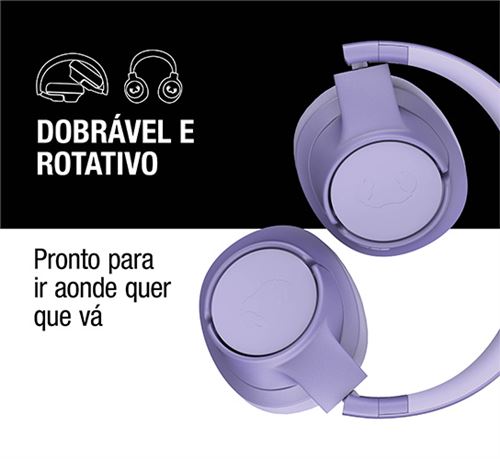 Outras Informações Assistente de voz | Controle de volume e botões play/pause | Design dobrável e rotativo