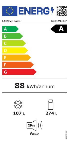 Frigorífico Combinado Lg Gbb92Mbb3P | 203X59,5X67,5 Cm | 274 L | a | Prateado - Outlet - Grade C