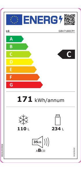 Frigorífico Combinado Lg Gbv7180Cpy | 186 X 59.5 X 67.5 Cm | 344 L | C | Prateado - Outlet - Grade B