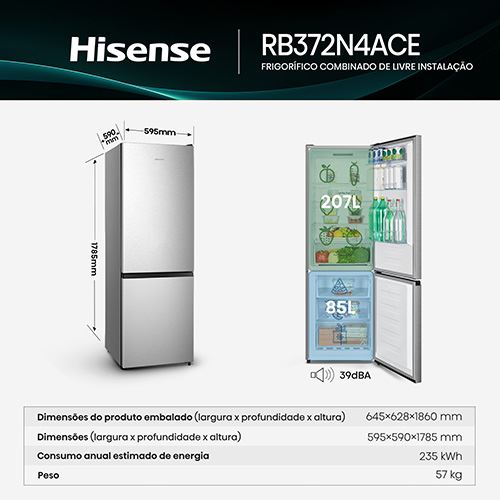 Frigorífico Combinado Hisense RB372N4ACE | 178,5x59,5x59 cm | 292 L | E | Look Inox