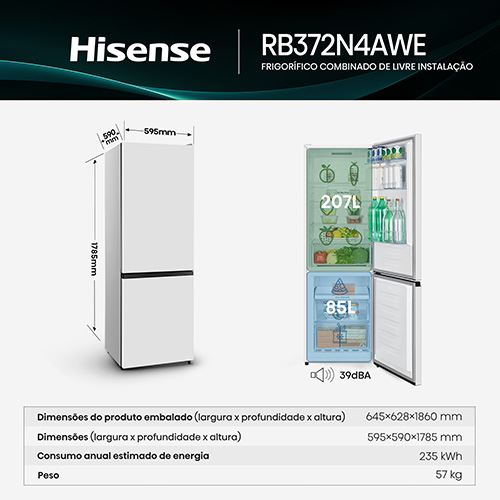 Frigorífico Combinado Hisense RB372N4AWE | 178,5x59,5x59 cm | 292 L | E | Branco