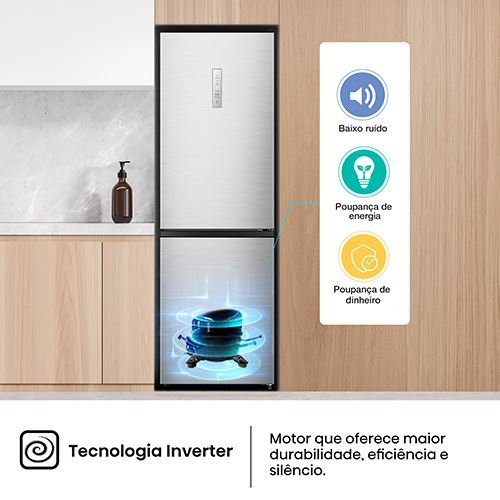 Os frigoríficos Hisense integram tecnologia LED para iluminação interior. Em comparação com as lâmpadas incandescentes, os LED fornecem menos calor, mais brilho e poupança de energia.