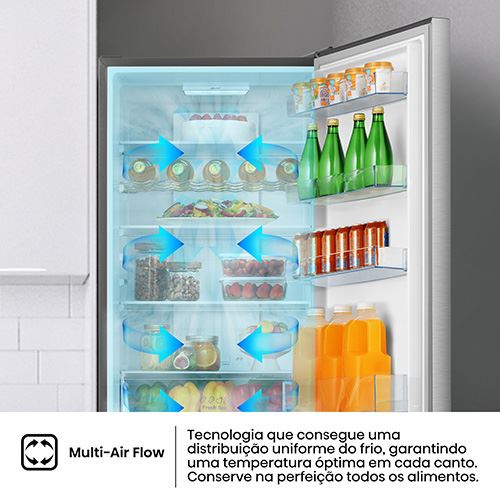 Com pequenos orifícios na parede traseira do equipamento, é mantida uma temperatura uniforme em todo o frigorífico, especialmente depois de a porta ser aberta. Ao arrefecer cada secção de cada compartimento ao mesmo tempo, ajuda a manter a sua comida fresca durante mais tempo.