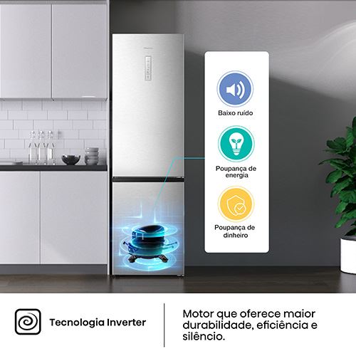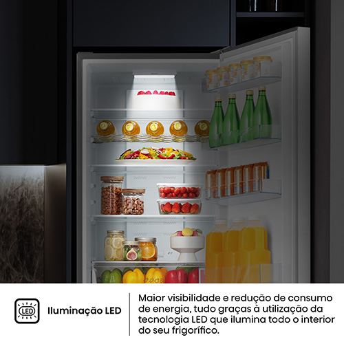 Os frigoríficos Hisense integram tecnologia LED para iluminação interior. Em comparação com as lâmpadas incandescentes, os LED fornecem menos calor, mais brilho e poupança de energia.