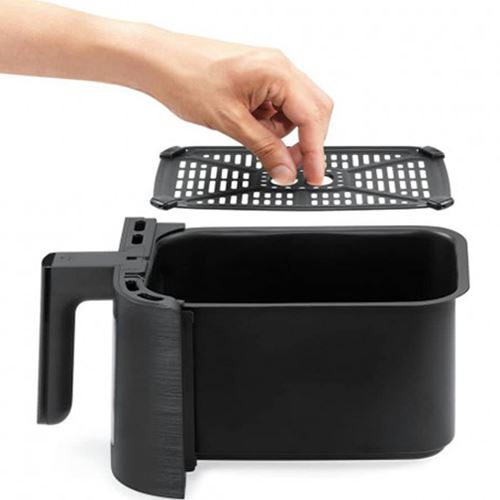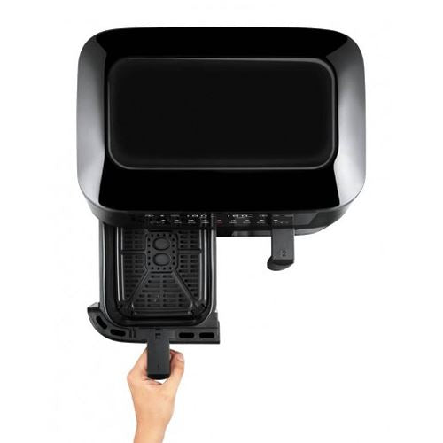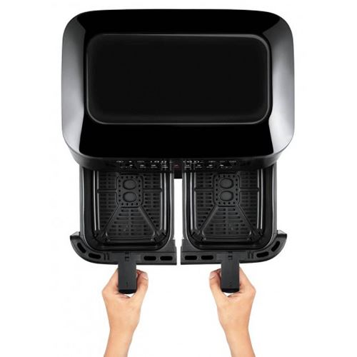 Serve entre 7-9 porções | Formato Cesta Retangular | Temperatura ajustável: 80º - 200ºC | Tecnologia SMART | Tecnologia MATCH | Comandos digitais- painel touch digital fácil de usar | Resultados mais crocantes e uniformes | Componentes desmontáveis | Aviso sonoro | Potência: 2570-3040 W | Cestas totalmente removíveis e laváveis na máquina para facilitar a limpeza | Temporizador: 60min