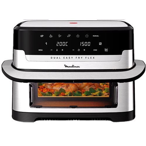 Fritadeira sem Óleo Airfryer Moulinex EZ922DF0 Dual Easy Fry Flex 9L - Aço inoxidável