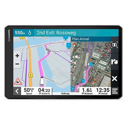 Notificações inteligentes através da aplicação Smartphone Link (com o aplicativo Garmin Drive™), Atualizações de mapas e de software por Wi-Fi® , Acesso a serviços em tempo real através da aplicação | Funcionalidades para camião trator: Rotas especiais para camiões , Pontos de interesse para camiões , Limites de velocidade específicos para camiões , Diretório de serviços para camiões e reboques, Perfil de camião simples, Dados de rotas populares para camiões, Orientação carga até doca