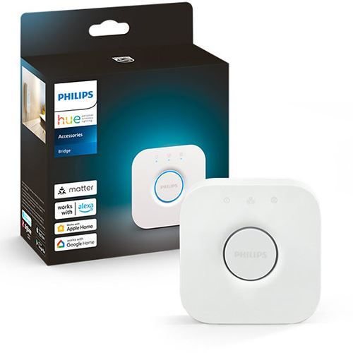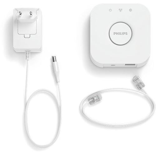 O cérebro do sistema de iluminação inteligente Philips Hue, a Hue Bridge, permite-lhe conectar e controlar até 50 luzes e acessórios. Basta ligá-la e usar a aplicação Hue para definir rotinas, temporizadores, efeitos de luz personalizados e muito mais.