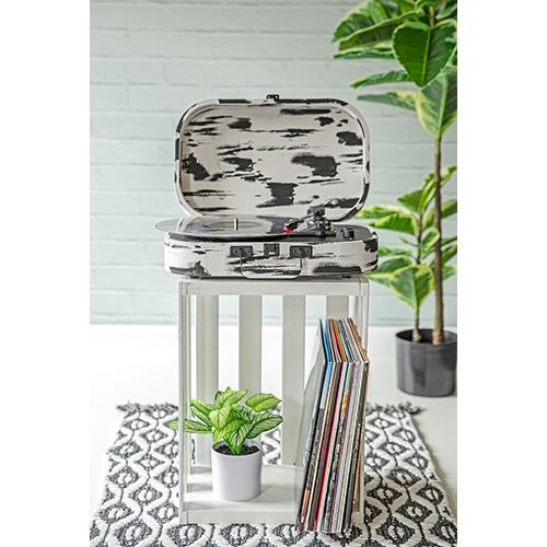Este gira-discos portátil de três velocidades (33 1/3, 45, 78 RPM) está pronto a tocar assim que sai da caixa.