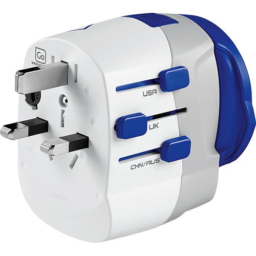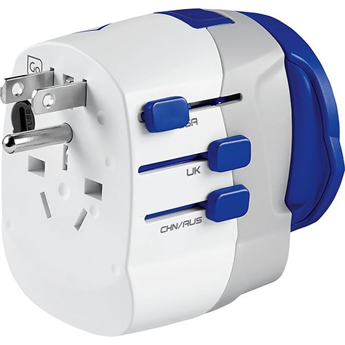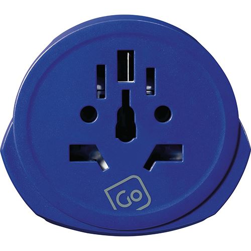 Adaptador Tomada Go Travel EU / Mundial com USB/USB-C - Branco / Azul