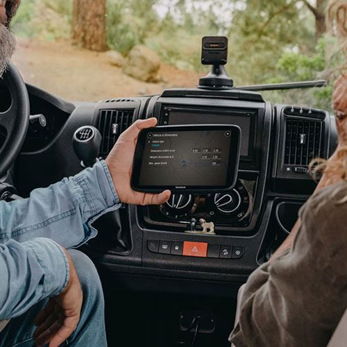 Com percursos específicos para autocaravanas, deixe as ruas estreitas para trás e conduza com tranquilidade. Descubra facilmente locais de acampamento pitorescos ao longo do seu percurso, graças aos pontos de interesse dedicados apresentados num grande ecrã de 7" para uma condução mais segura.