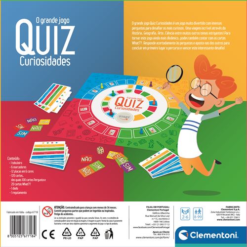 Um divertido jogo de tabuleiro com muitos quizzes para desafiar amigos e familiares. Várias perguntas para se porem à prova sobre as curiosidades mais extravagantes do mundo. Com uma mecânica de jogo original: os outros jogadores deverão apostar na resposta do adversário.