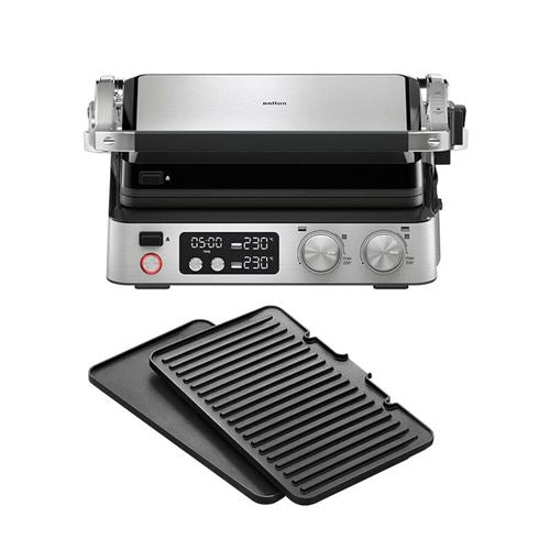 Voltagem / Frequência: 220-240 V / 50-60 Hz | Controlo independente da temperatura das placas | Placas Removíveis | Sistema de bloqueio para armazenamento | Pega de toque frio | Termóstato de segurança | Termóstatos independentes: pode regular a temperatura de cada placa separadamente para cozinhar dois tipos de alimentos em simultâneo | Tabuleiro para gorduras integrado e amovível| Braun Cooking – app com dicas, truques e receitas | As placas e o tabuleiro de gordura podem ser lavados na máquin