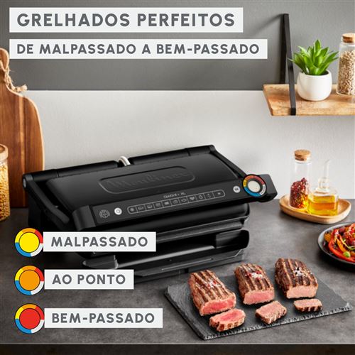 O segredo para grelhados sempre perfeitos: O OptiGrill+ XL ajusta automaticamente o tempo de cozedura para conseguir grelhados com resultados sempre perfeitos, desde mal a bem passado!
