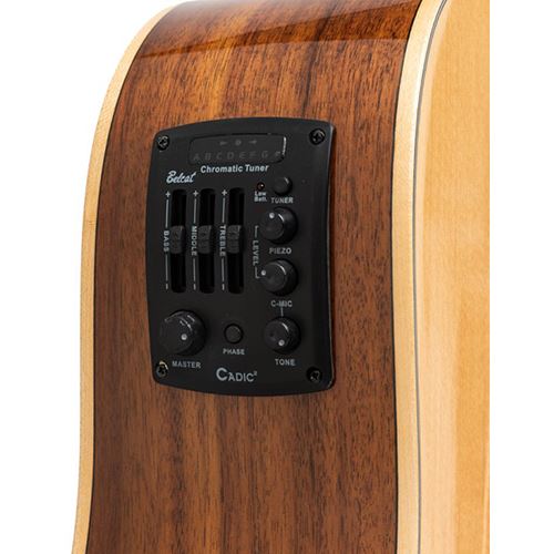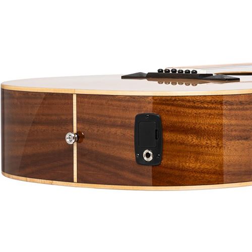 Primeiro frete (união) com 44mm | Captação em dois pontos, com microfone montado na boca e captador (pick-up) na ponte, pré-amplificação com controlos mix, bass e treble, inclui ainda afinador.