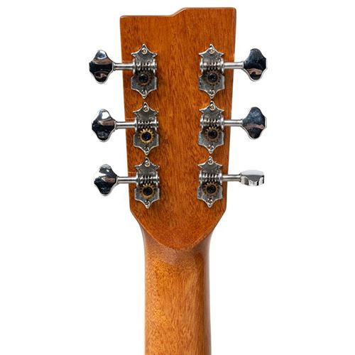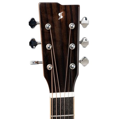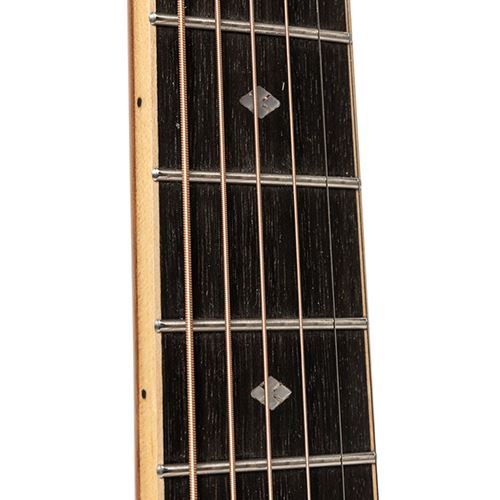 Topo em madeira de Abeto | Costas e lados em Acácia | Braço em Mahogany com secção moderna C, acabamento satinado | Escala em Pau-rosa com incrustações estilo floco de neve | Ponte em Pau-rosa | Pentes em osso | Uniões em Maple com incrustações (purfling) | Roseta com madeira de bordo (maple) | Guarda-unhas em ABS preto (por montar)