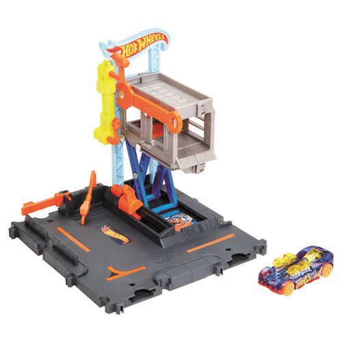 Crie a paisagem urbana definitiva com cada um dos conjuntos Hot Wheels City Downtown que apresentam locais reconhecíveis e jogue com o tema da criatura nêmesis. É aqui que a emoção acontece! A coleção inclui uma estação de conserto, um drive-thru de hambúrguer, um conjunto de lavagem de carros e um conjunto de garagem que se conectam entre si, bem como outros conjuntos hot wheels . Cada um é vendido separadamente.