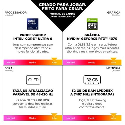Computador Portátil Gaming Omen Transcend by HP 14-fb0002np | 14'' | Core™ Ultra 7 155H | 16GB | 1TB SSD | GeForce RTX™ 4060