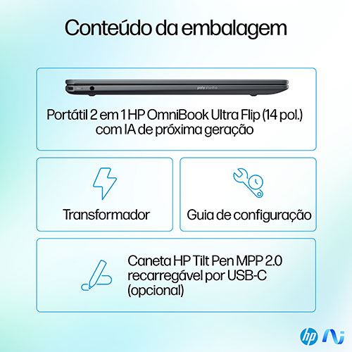 Desfrute da potência, mobilidade e estilo com o HP OmniBook Ultra Flip com IA de próxima geração. Dê vida às suas criações com o mais recente processador Intel® Core™ Ultra acelerado por IA.