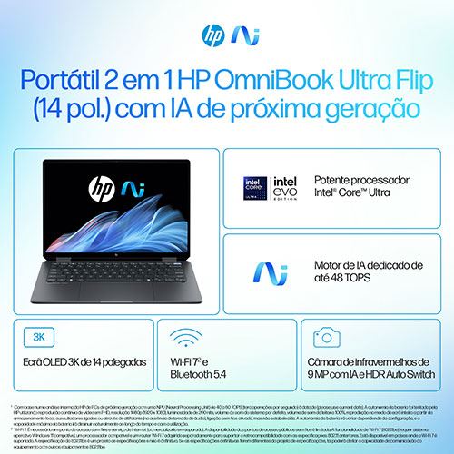 Computador Portátil HP OmniBook Ultra Flip 14-fh0008np | OLED 14" | Intel® Core™ Ultra 9 288V | 32GB | 1TB SSD
