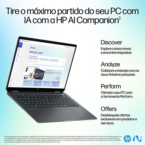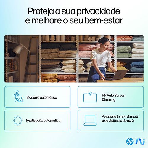Faça mais em menos tempo com ferramentas de IA privadas e seguras e uma autonomia da bateria alargada, tudo isto enquanto protege o seu portátil com as funcionalidades da HP Wolf Security para consumidores.Acelere a criatividade com um desempenho alimentado pela IA