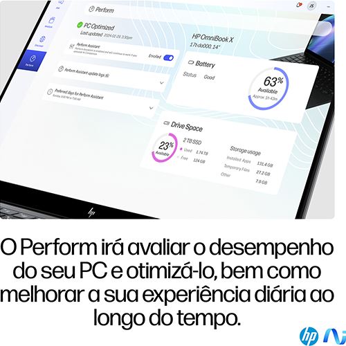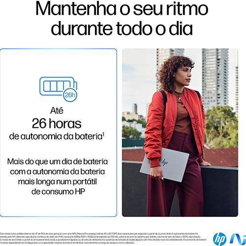 Equipado com o Snapdragon® X Elite, um motor de IA com NPU dedicada e uma autonomia da bateria de até 26 horas, o novo HP OmniBook X com IA irá elevar o seu nível de produtividade personalizada. Uma câmara de 5 MP com Windows Studio Effects e as melhores ferramentas de colaboração irão melhorar a sua comunicação sem interrupções.