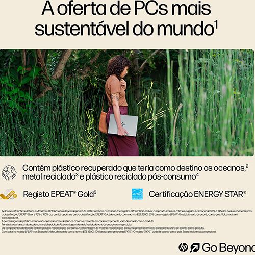 Contém metais e plásticos reciclados; Registo EPEAT® Gold e certificação ENERGY STAR®.