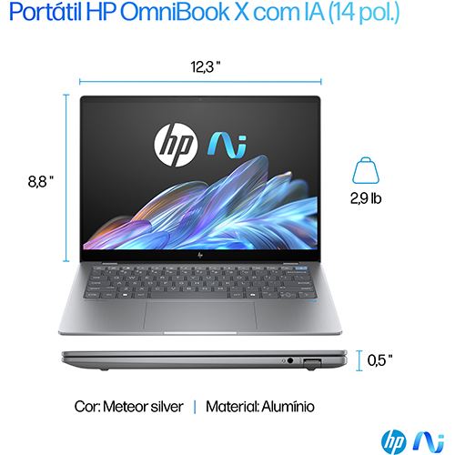 Computador Portátil HP OmniBook X14-fe0000np | 14" | Snapdragon® X Elite X1E-78-100 | 16GB | 1TB SSD