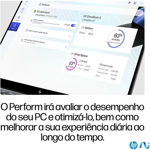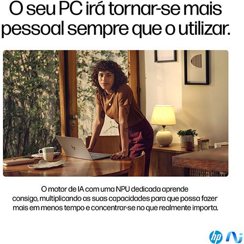 Equipado com o Snapdragon® X Elite, um motor de IA com NPU dedicada e uma autonomia da bateria de até 26 horas, o novo HP OmniBook X com IA irá elevar o seu nível de produtividade personalizada. Uma câmara de 5 MP com Windows Studio Effects e as melhores ferramentas de colaboração irão melhorar a sua comunicação sem interrupções.