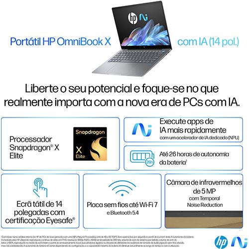 Computador Portátil HP OmniBook X 14-fe0002np | 14" | Snapdragon® X Elite X1E-78-100 | 32GB | 1TB SSD