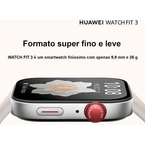 O novo HUAWEI WATCH FIT 3 foi feito para ser usado 24 horas por dia, distinguindo-se pelo seu conforto com apenas 9,9 mm de espessura e 26 g.