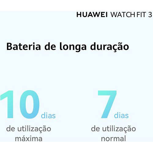 Autonomia (Estimativa) Até 10 dias |Usto típico: até 7 dias ( Os cenários de utilização típicos baseiam-se nos hábitos da maioria dos utilizadores. A duração real da bateria depende dos hábitos do utilizador e da frequência de utilização)