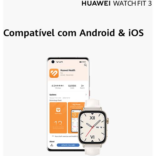 O HUAWEI WATCH FIT 3 é compatível com Android e iOS para dar resposta às necessidades de qualquer utilizador.