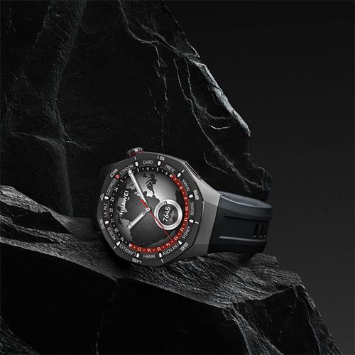 O design unissexo do Huawei Watch GT5 Pro é tanto estético quanto funcional. A bracelete preta está disponível em fluoroelastómero ou titânio, proporcionando conforto e durabilidade. A caixa do relógio é feita de liga de titânio na parte frontal e cerâmica na parte traseira, conferindo-lhe um aspeto premium e resistência. Com um peso de aproximadamente 81 g a 97 g, dependendo do material da bracelete, este smartwatch é leve e confortável de usar durante todo o dia.